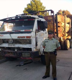 Carabineros detuvo a camión con trozos de madera robada a Forestal Arauco en predio de Loncoche