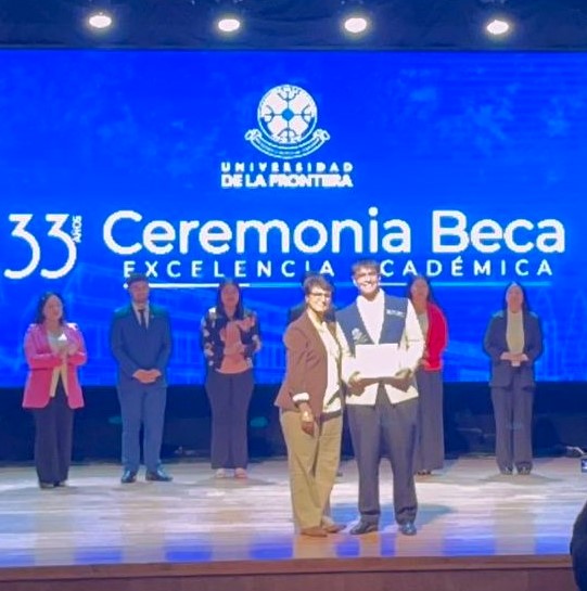 Hasta la ciudad de Temuco viajó, este pasado martes 16, Juan Pablo Bastías Sandoval, acompañado de su familia, para recibir la Beca de Excelencia Académica de la Universidad de La Frontera. La distinción fue entregada en una cálida ceremonia realizada en el Aula Magna de la casa de estudios, instancia en la que se otorgaron los principales reconocimientos académicos de la institución.