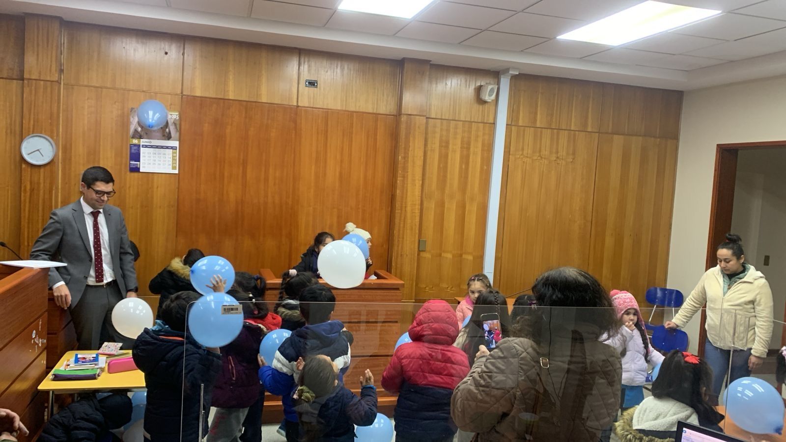 El Juzgado de Letras y Familia de Loncoche recibió la visita de 18 niños y niñas de kinder de la escuela Araucarias, quienes pudieron conocer las dependencias del tribunal, donde los funcionarios del juzgado, encabezados por el magistrado Cristóbal Navarro Rodríguez, explicaron, con un lenguaje didáctico, el trabajo que se lleva a cabo, además de temáticas relacionadas a sus derechos, en especial el de ser oído.