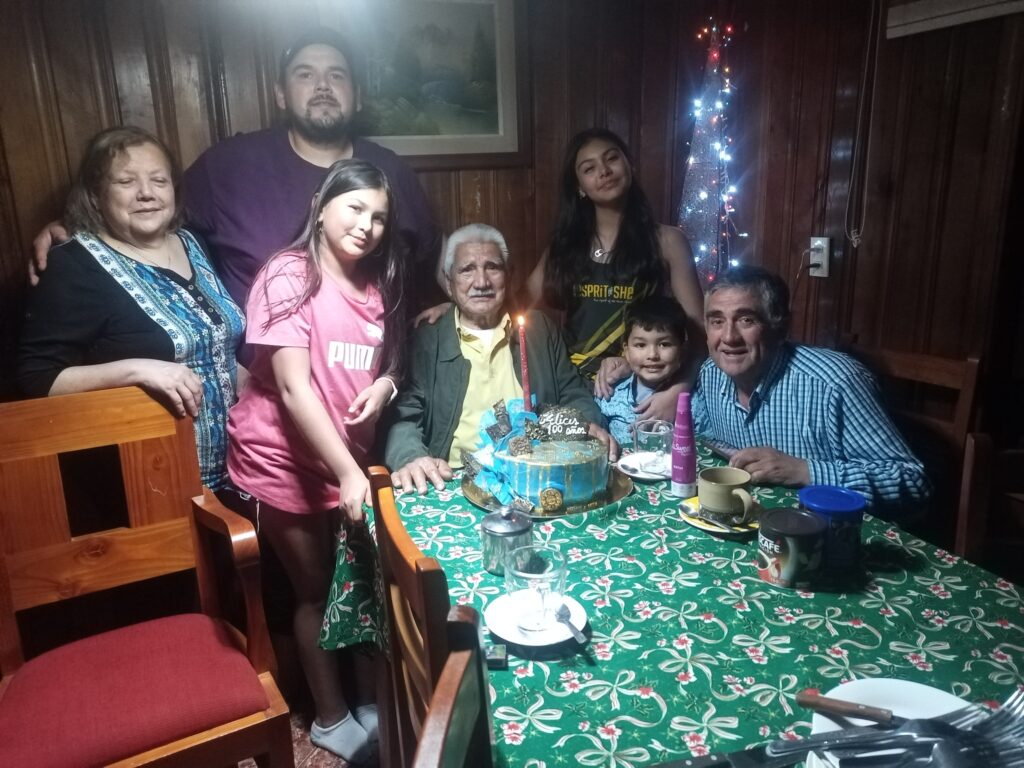 Su hijo, Junior, más conocido acá como “Gonzalito”, comerciante en la calle Bulnes, pleno centro de Loncoche, nos invitó; siempre conversamos con él y nos anunció este evento el que se realizó el domingo 10 pasado, en su casa acompañado de su esposa y por Matías y sus 3 hijos, también comerciante, muy conocido y nieto del festejado.
